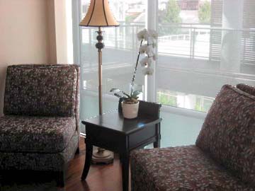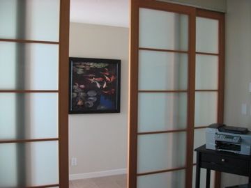 The office can be left open to the entry hall or closed off with sliding shoji screens. Rolling window shades give you privacy while preserving the view.